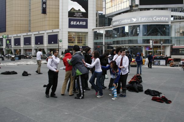 For this mission a group of 20 agents made there way to Dundas Square. At first they stood around like that had come down to the Eaton Centre for a day of shopping. But things quickly changed. At first it was just one agent who felt an itch coming on and started to scratch his back.